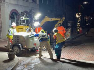 To support safe and efficient night work, crews recently set up a light tree in Olde Towne Conyers as part of ongoing infrastructure activities. Light trees provide powerful, elevated illumination that allows essential work to continue after daylight hours while minimizing disruptions to daytime traffic and nearby businesses.