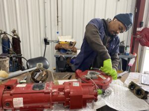 Mechanical Maintenance Specialist Anthony Walker Jr. is pictured disassembling a polymer feed pump as part of a scheduled maintenance and asset-recovery initiative. In this process, Walker applies his technical expertise to carefully remove, inspect, and salvage high-value internal components that can be reused to support ongoing operations. His work strengthens the facility’s proactive maintenance strategy—reducing downtime, optimizing equipment performance, and ensuring the reliability of polymer delivery systems that are essential to effective water treatment.